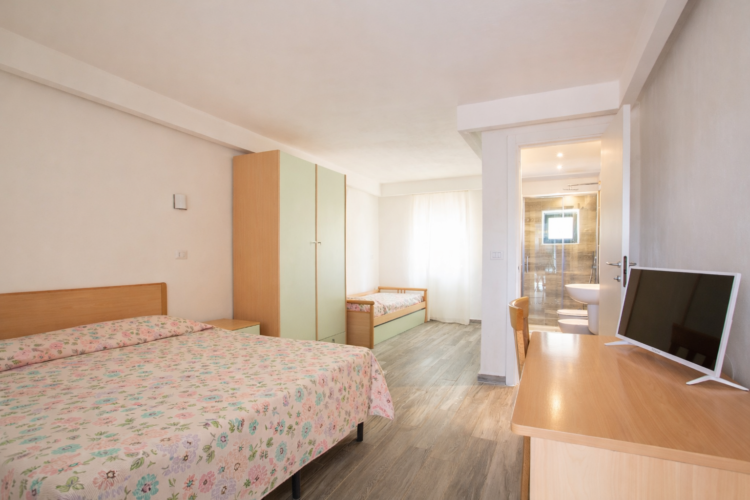La Camera Quadrupla Standard è composta da un’ampia e confortevole camera con letto matrimoniale e due letti estraibili, ideale per ospitare fino a quattro persone. Dispone inoltre di un bagno privato con doccia e di una veranda privata, perfetta per trascorrere piacevoli momenti di relax in un ambiente riservato e confortevole.