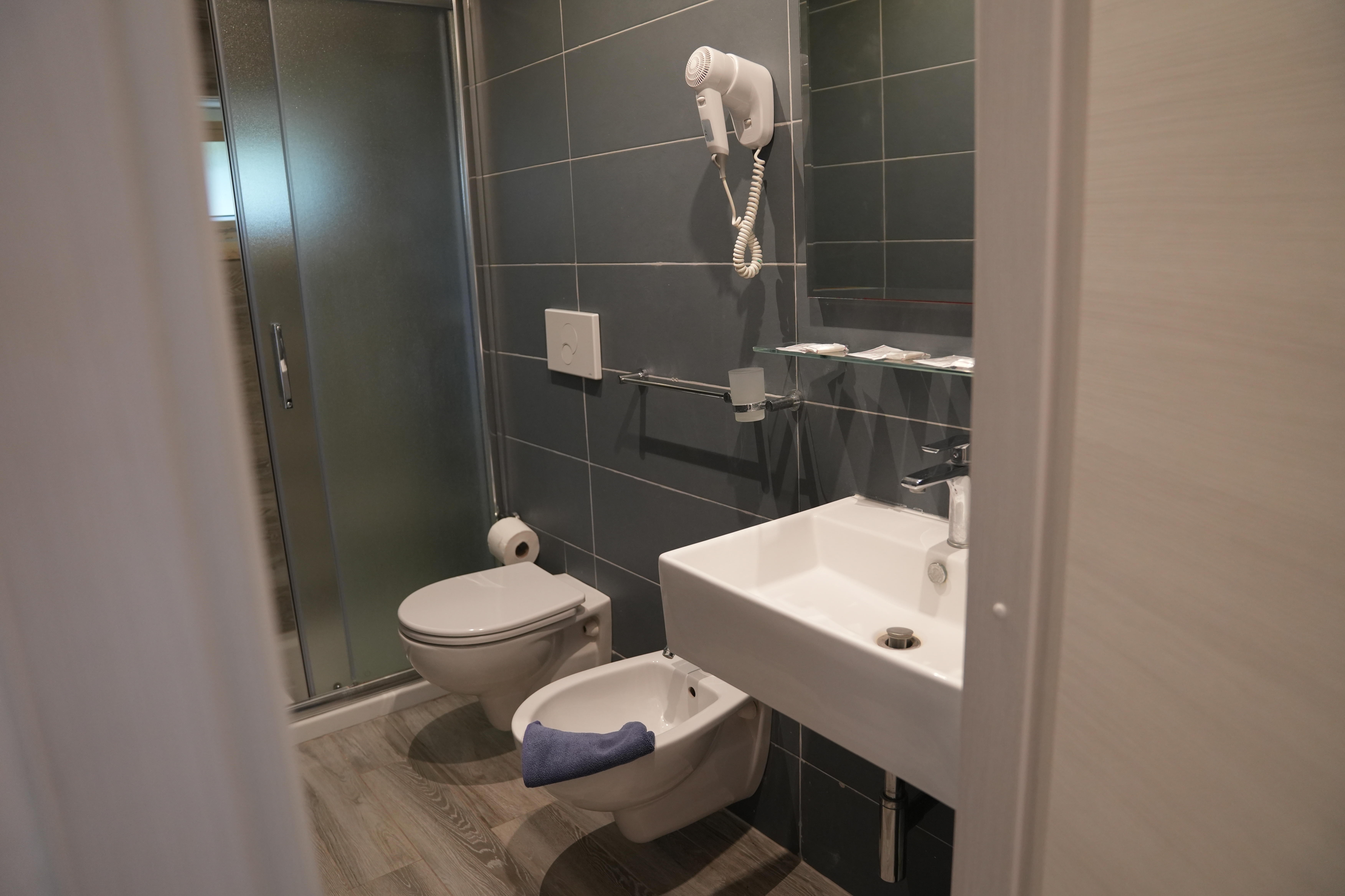 La Bicamera per 4 persone è composta da un’anticamera con due letti singoli e una camera matrimoniale, offrendo spazi distinti e confortevoli. Dispone inoltre di un bagno privato con doccia e di una veranda privata, ideale per trascorrere piacevoli momenti di relax in un ambiente riservato e accogliente.